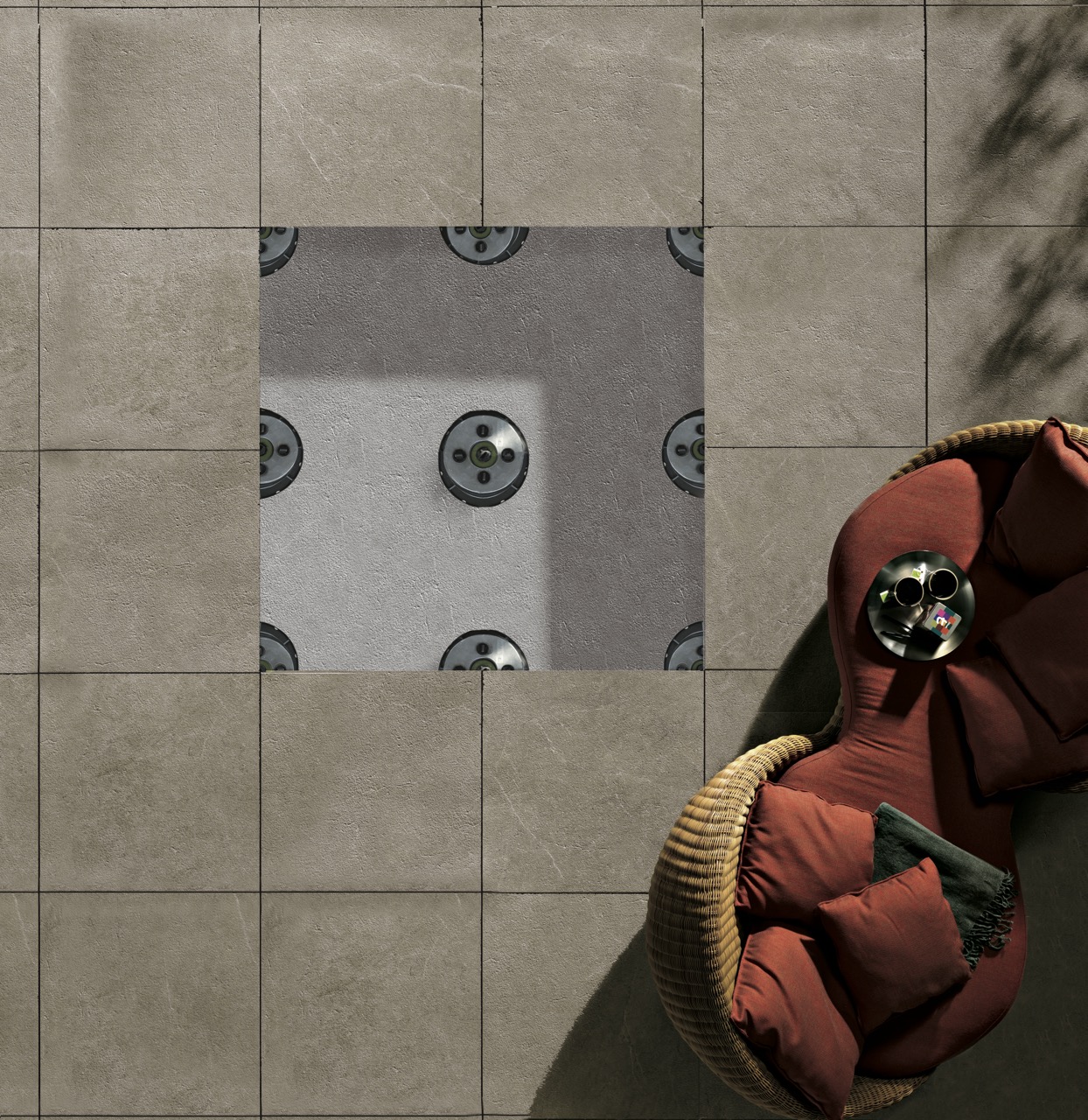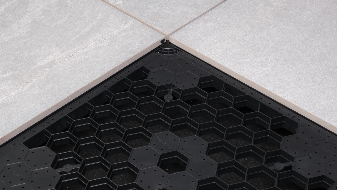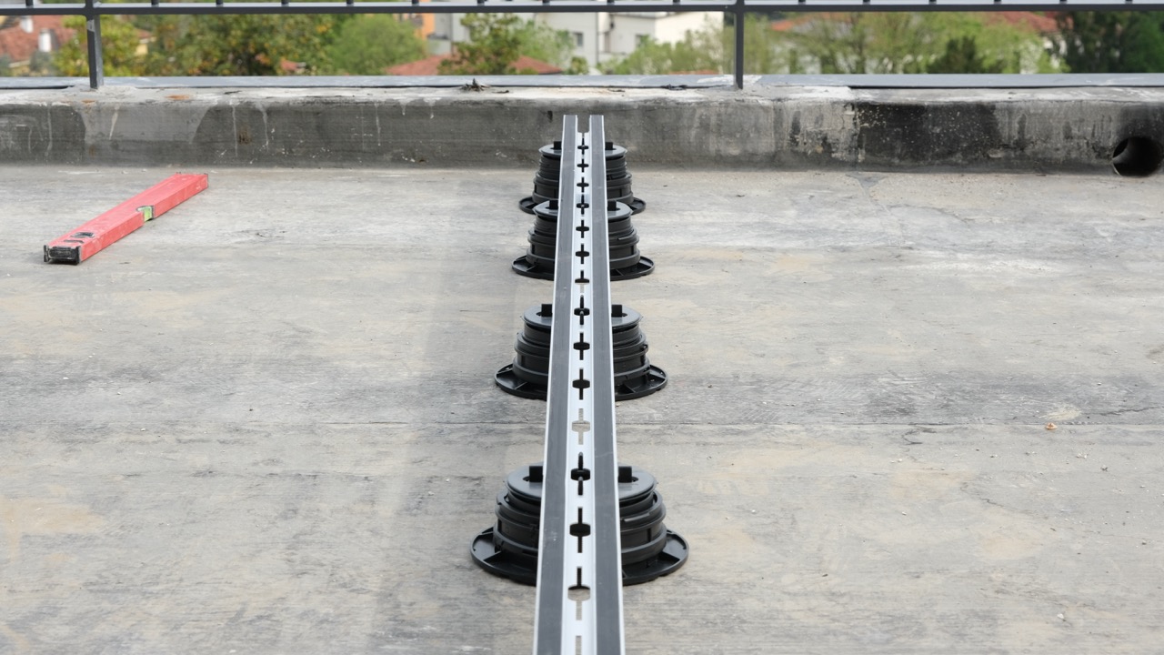 Das Stelzlagersystem ist eine innovative Lösung für für Trassen mit Aufbauhöhen von wenige Millimetern bis zu 35cm.